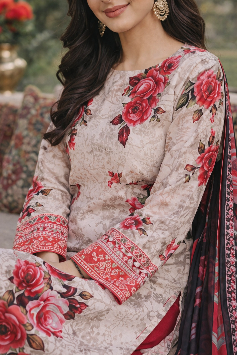 3Pc Printed Suit High Quality Lawn